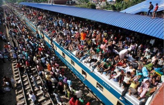 印度人很多,比中国少不了多少,他们的交通不是很发达,火车发车量有限,但是人们又有很大的出行需求,车里面装不下,只能车里车外都是人,火车上严重超载,车内车顶都是急切要回家的人。车厢不够坐车头,车头不够坐车顶,这是南亚地区的奇葩现象。